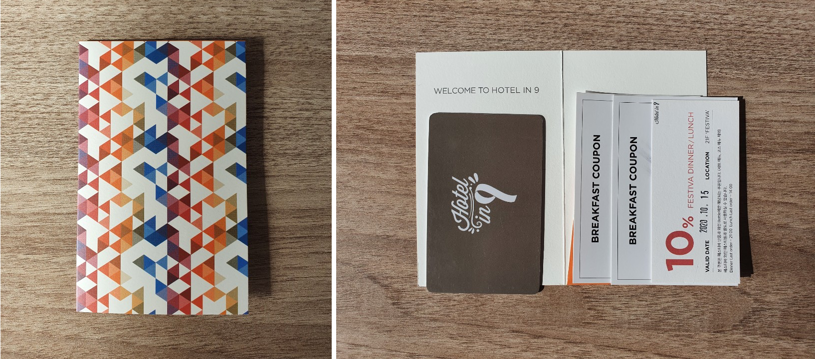 저는 조식이 포함된 패키지를 이용했기 때문에 키와 함께 조식 쿠폰을 받았습니다.