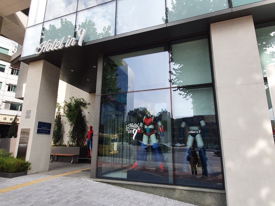 호텔 인 나인 입구에는 아주 큰 스파이더맨과 로보트 태권 브이가 있어서 쉽게 찾으실 수 있을 것 같습니다.