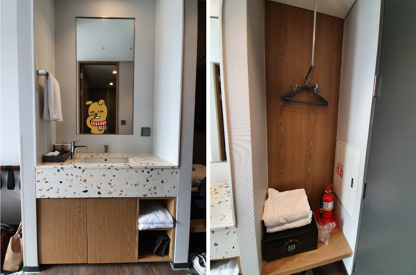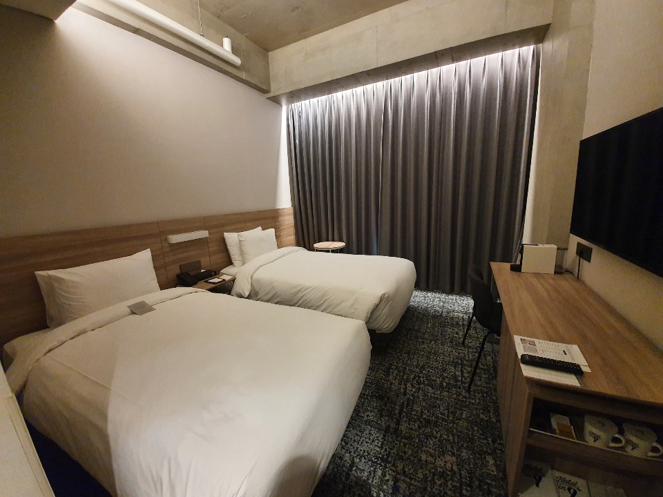 사실 방이 많이 좁을까봐 걱정했었거든요ㅠㅠ 그런데 두 명이서 투숙하기에는 (넉넉하지는 않더라도) 충분한 크기라고 생각했습니다.