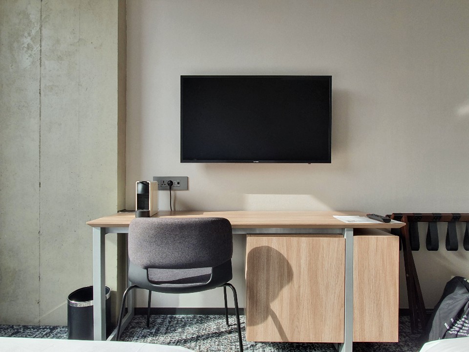 데스크가 널찍해서 편하게 업무를 볼 수 있을 것 같았습니다. 티비 크기가 그렇게 크지 않아서 조금 아쉬웠네요!