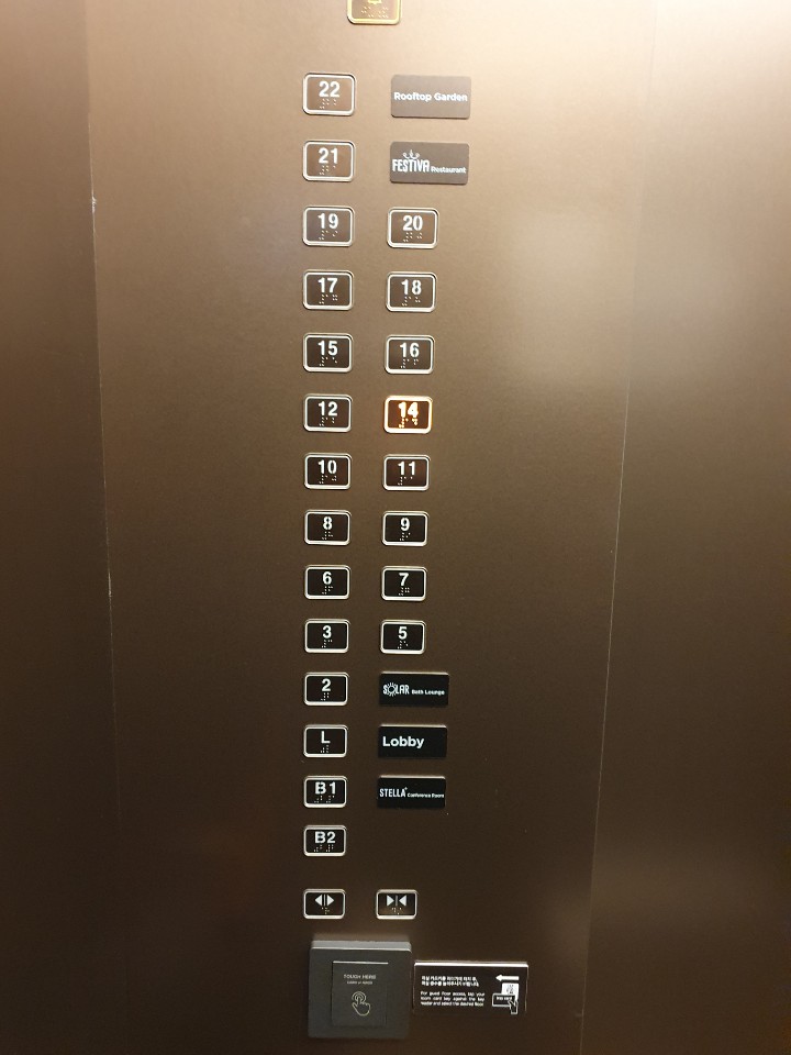 엘리베이터는 로비를 제외하고 다른 층은 카드키를 대야만 버튼을 누를 수 있었습니다.