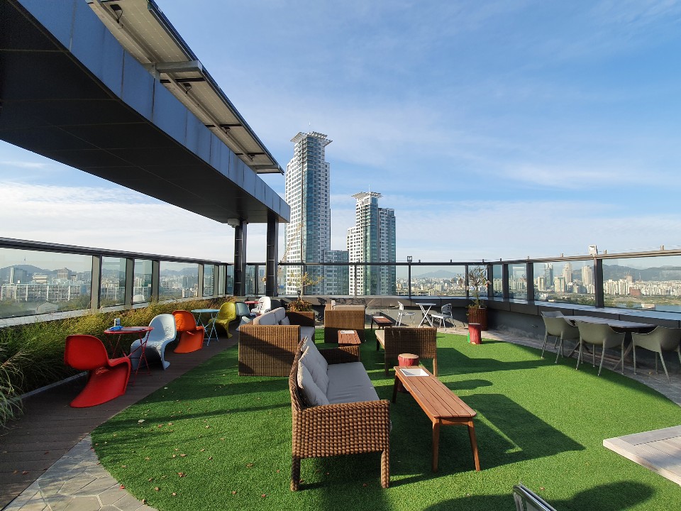 호텔 인 나인으로 출근하셔서 점심도 드시고 루프탑에서 맥주 한잔 하면서 업무를 본다면...