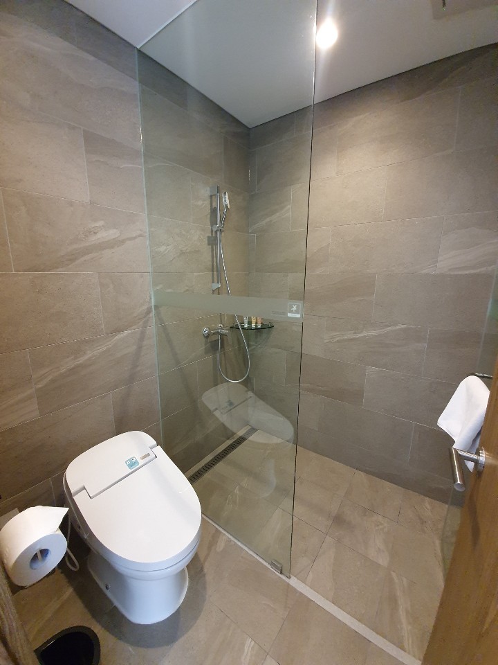 화장실은 샤워부스로 분리되어 있습니다. 살짝은 좁다고 느껴질 정도의 공간감이에요.